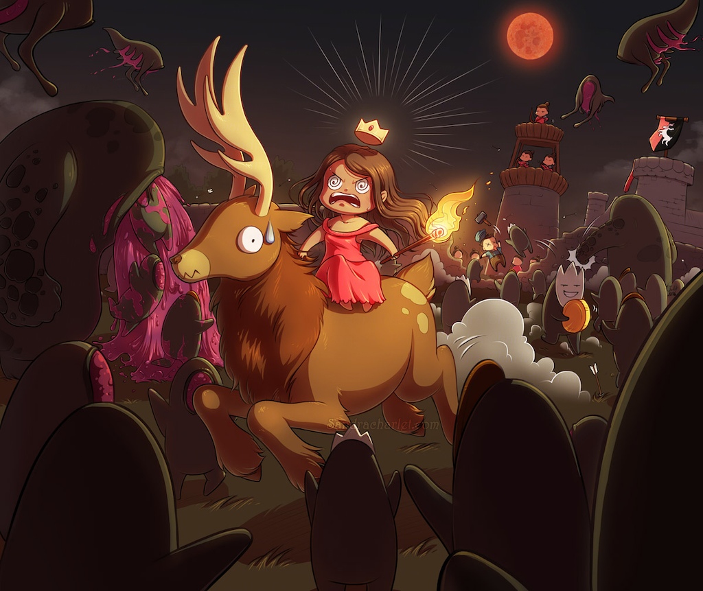 Ни в коем случае не стоит забывать, что наш король абсолютно беззащитен и не имеет собственного меча или какого-либо другого оружия, но именно он является вашим персональным альтер-эго в мире игры, а потому все решения, касающиеся жизни и развития ваших земель принимаются только при вашем непосредственном участии. Необходимо улучшить башню или нанять новых подданных? Просьба прибыть на место лично. Хотите наблюдать оборону ваших границ? Срочно скачите галопом на поле боя. Единственное, что может немного помочь монарху быть проворнее и эффективнее – возможность находить новых лошадей и других ездовых животных, вроде сказочно выглядящего оленя или целого медведя! Каждое существо обладает своими плюсами и минусами, отличается по скорости и выносливости, а медведь даже способен разбегаться и атаковать лесную дичь и оказавшиеся на пути силы Жадности.