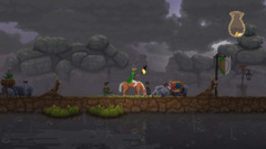 Если же говорить о уникальных видах врагов, то помимо серых и безликих толп рядовых жадин вам буду встречаться и более живучие, напялившие на себя зловещие маски противники. Но страшнее и опаснее всего летающие монстры, предпочитающие грабежам похищение самих ваших подданных, а также огромные громилы, швыряющие валуны и прямо на месте порождающие своих более мелких собратьев!