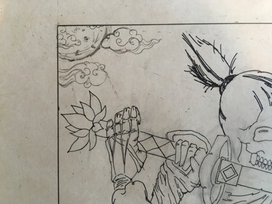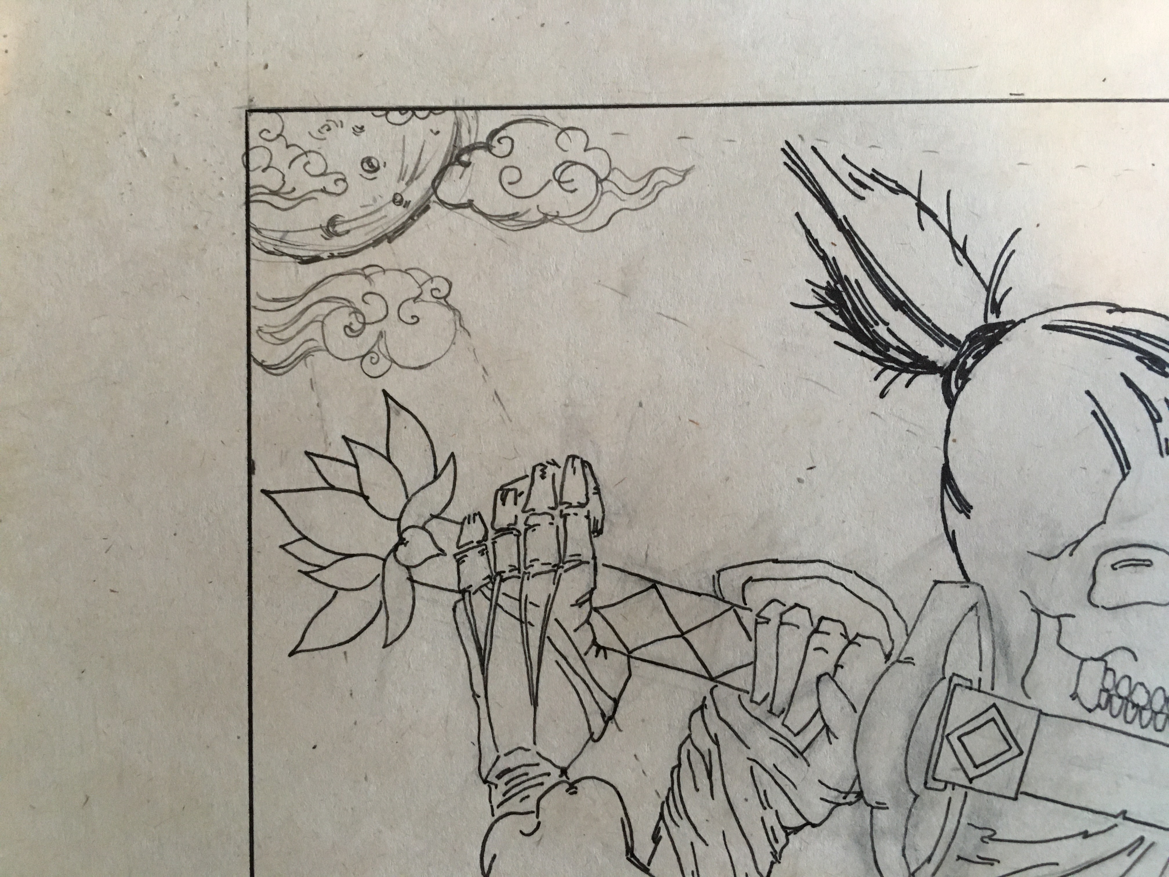 В это мгновение путник совершил рывок вперёд метнув шляпу в сёдзи, распоров стену, впустил свет полной Луны в комнату.