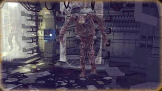 2. Второй раз мне было страшно с, уже неоднократно упомянутым, монстром который регенерировал части своего тела. Увидев его, я подумал:"Фи, ничего сложного." Но когда у меня закончились патроны на всем имеющемся оружие, меня охватила паника. Метаясь из угла в угол, я пытался найти способ как убить его, ну или хотя бы патроны. И вот когда он ушел под потолок, меня начал добивать звук, который он издавал. Этот скрежет, его вопли и нагнетающая музыка, заставляли меня бежать со всех ног. Я боялся, что вдруг он спрыгнет со спины и набросится, а жизней у меня оставалось мало. Дойдя до криогенных камер, я с больших трудом заморозил его. Ух после него я весь трясся. Вот это был адреналин.
