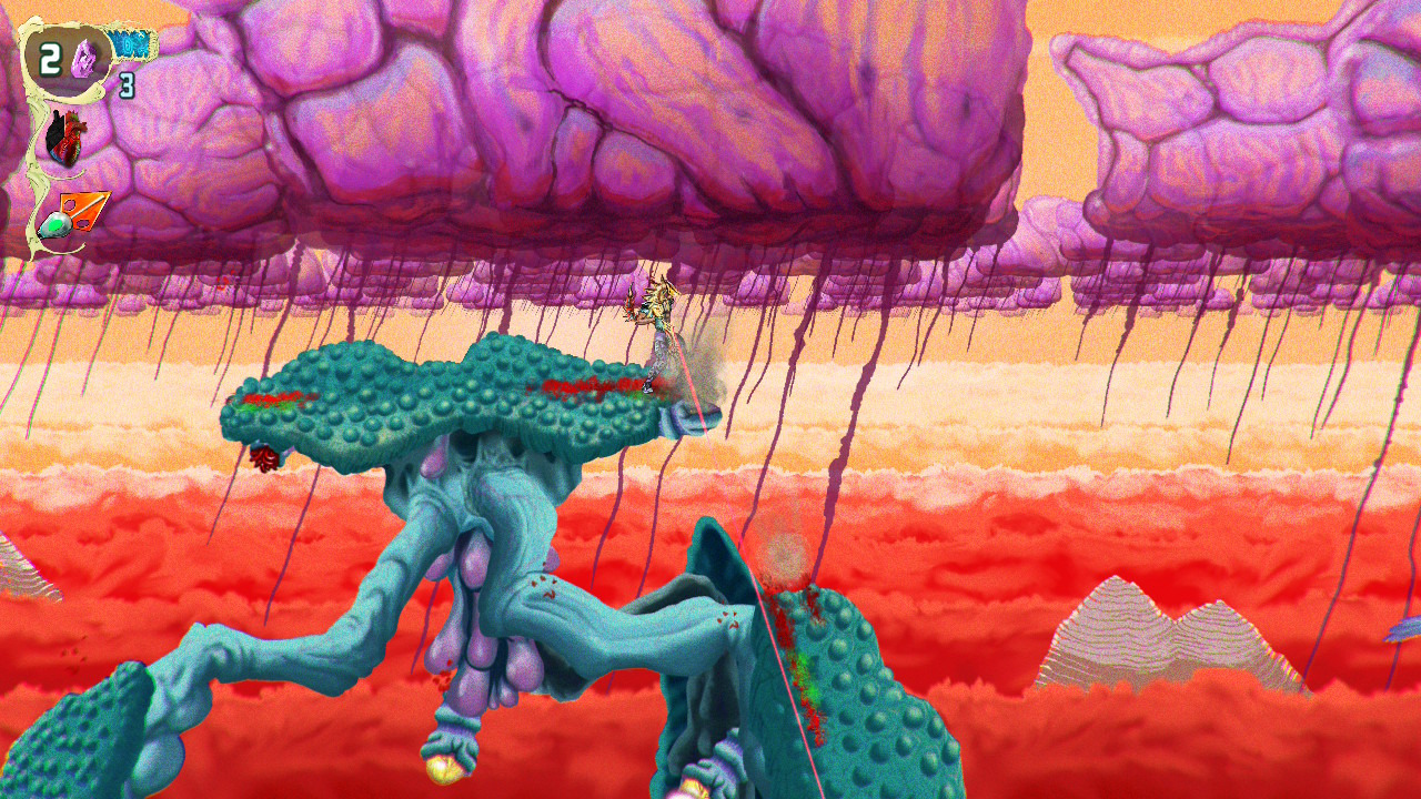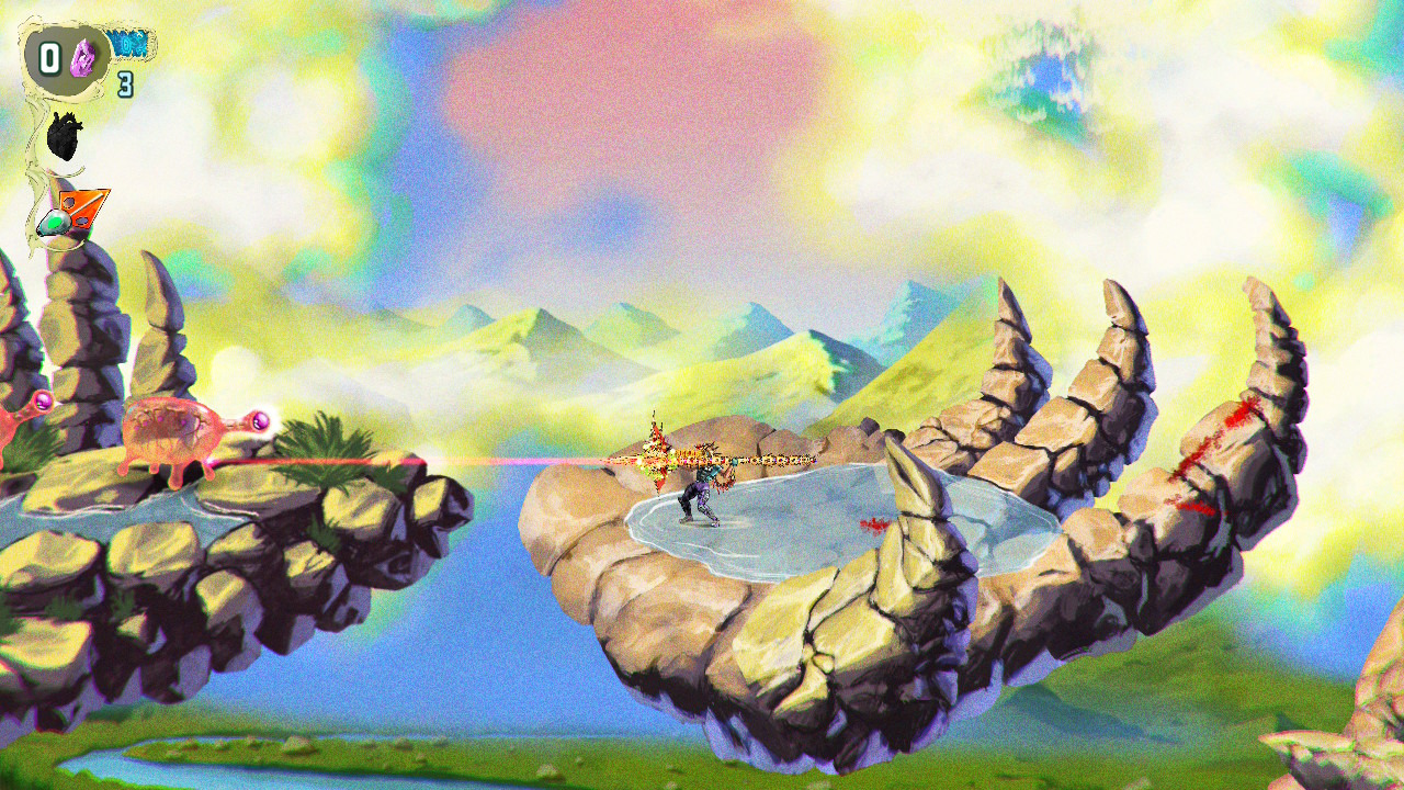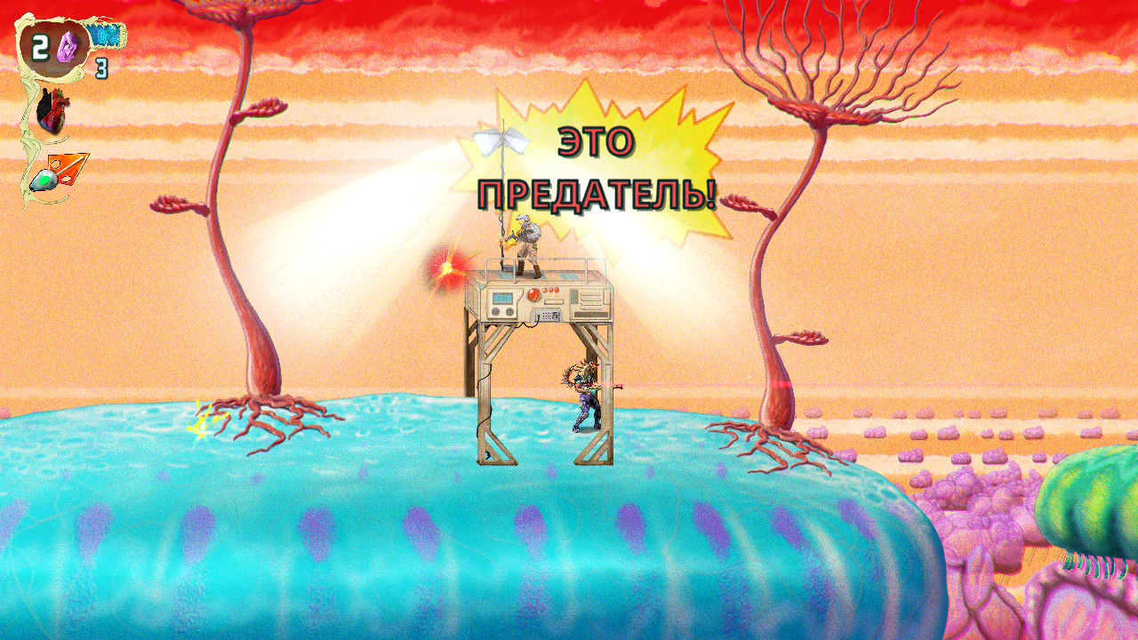 Уровней здесь всего десять, но каждый из них заметно отличается от других как визуально, так и по наполнению. Все этапы предлагают собственный набор врагов, препятствий и ловушек, а многие карты имеют развилки и скрытые участки, доступ к которым открывается лишь после получения новых способностей. Благодаря этому в структуре присутствует лёгкий привкус “метроидвании”, хотя формально перед нами всё же “миссионный” экшен-платформер с относительно линейным продвижением. Беги себе вперёд да стреляй по сторонам. Только и всего.