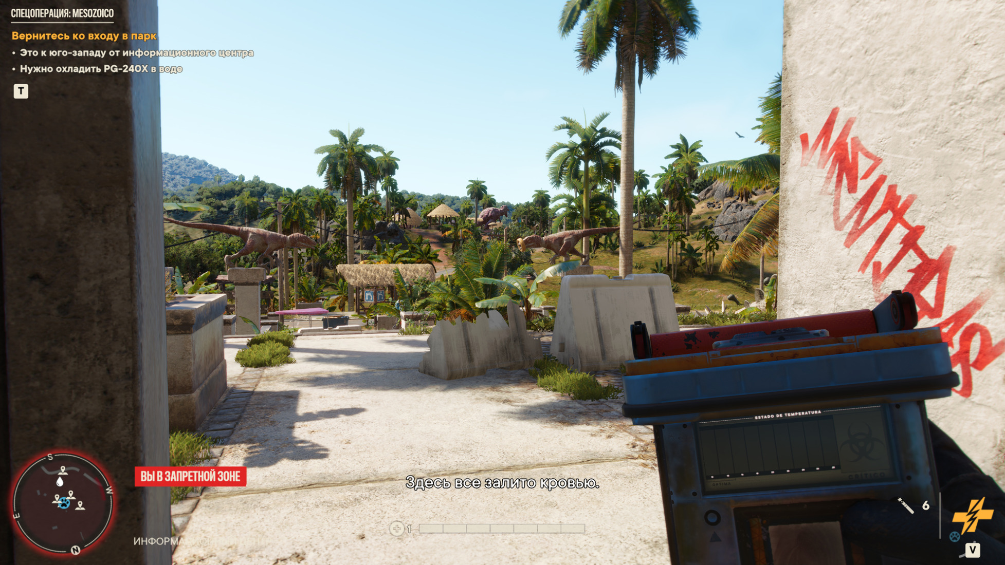 Необходимо, чтобы PG-240X не нагревался выше пятого деления. Пока вы находитесь в тени, PG-240Х не нагревается. Заранее спланируйте маршрут между местами, где можно его охладить водой. Ограничения по времени задания нету. Для облегчения задачи выполняйте на низкой сложности и в коопе.