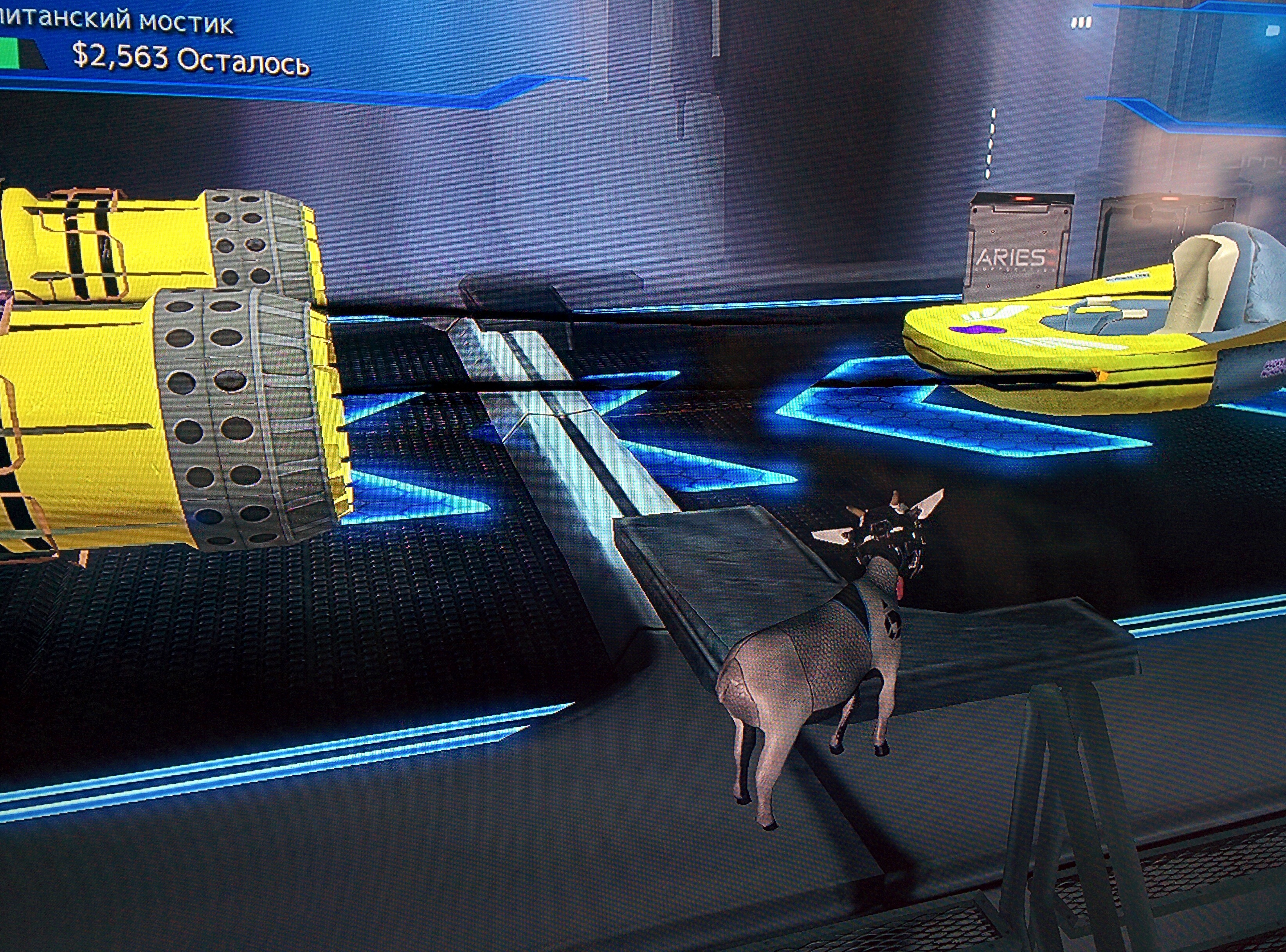 Так вот что я делал чаще всего, так это менял угол обзора телека: слева, справа, далеко, близко. Мне показалось, что моделька козла меняла свой размер и скорость. В итоге потратил около часа. Выполнил трофей, сидя козлом в нижнем левом края телевизора.