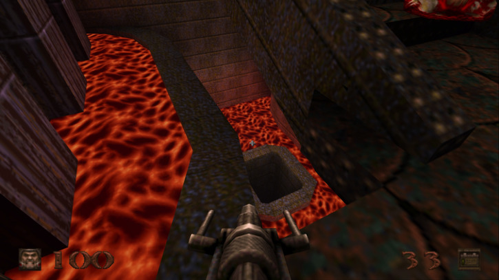 С помощью гранатомета подпрыгнули на площадку выше - сохранились.