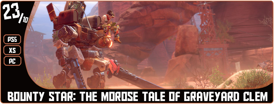 Bounty Star — трёхмерный экшен с видом из-за плеча, где битвы на шагоходе и его кастомизация сочетаются с добычей ресурсов и строительством базы. Красные просторы — богатый земледельческий и торговый регион, где рыщут жестокие преступники и свирепые твари. Остатки правительства препоручают правосудие таким специалистам, как Клементина, — охотникам за головами, которые отыскивают свою цель в самых опасных уголках этого многострадального мира.