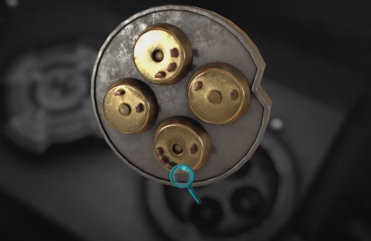 1) По дороге в подвал мы проходим мимо водолазного шлема и видим картину с обезглавливанием, на неё нужно нажать 3 раза;