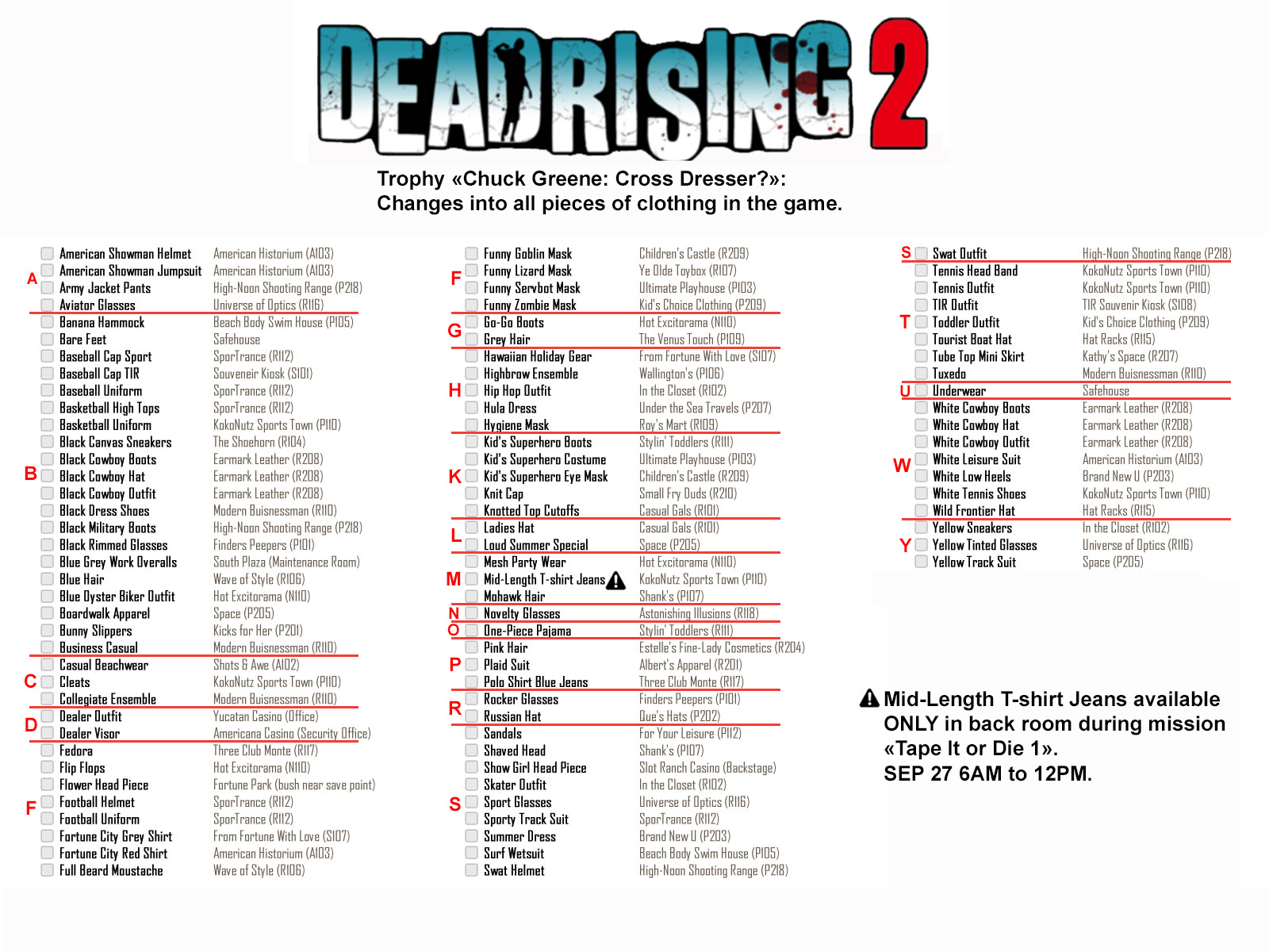 "Chuck Greene: Cross Dresser?": Поносите все доступные в игре элементы одежды.