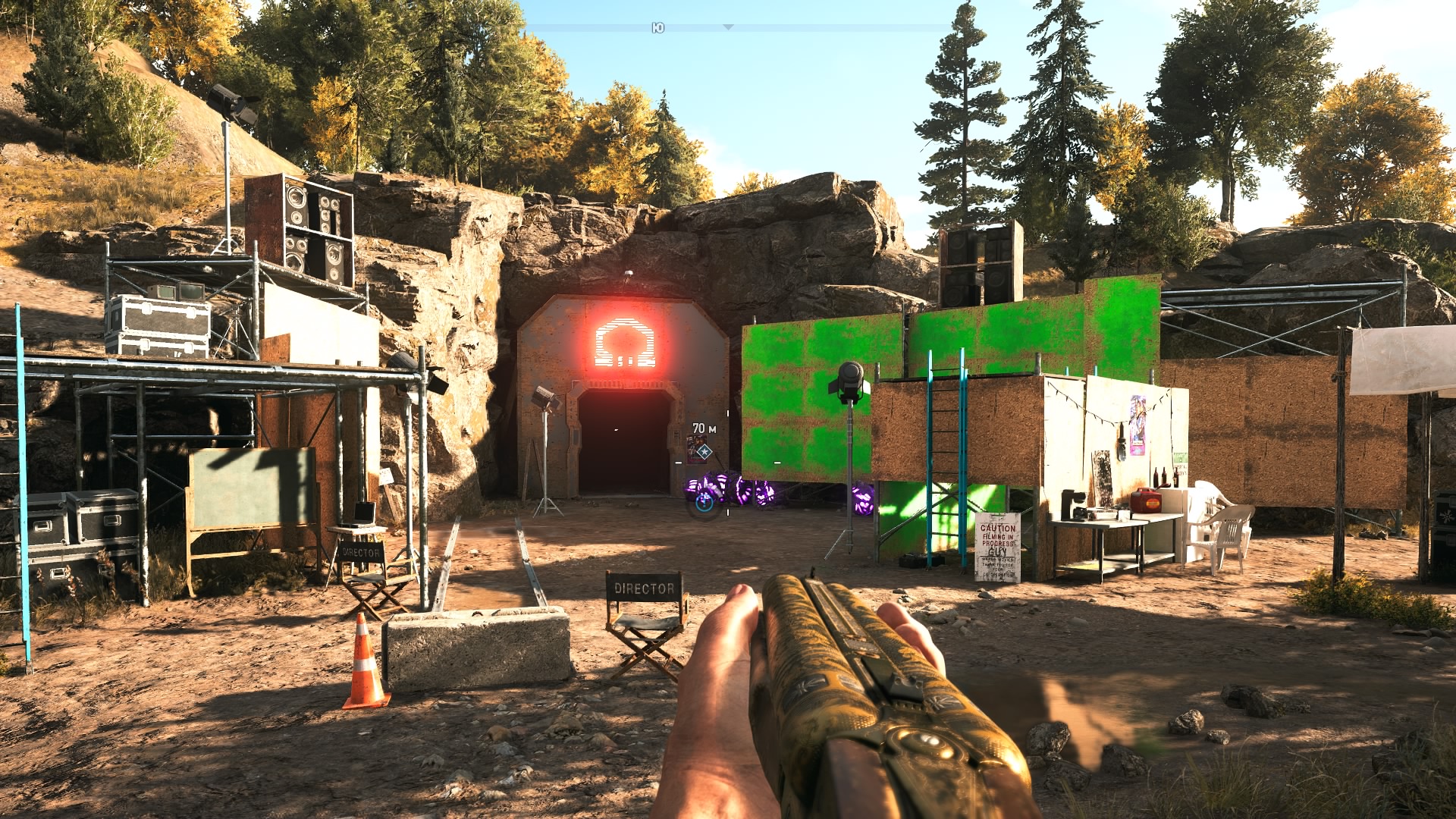 Можно выполнить в миссии "Тишина на площадке" от NPC по имени Гай Марвел в районе Веры, локация шахта Грималкина. Там будут стоять зелёные экраны и над входом знак Омега на скрине ниже показано.