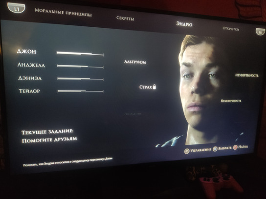 За Дэниела оставьте нож себе. Когда Авраам будет просить совета, скажите чтоб обвинил Мэри ( иначе отношения с Джоном упадут ) . После выхода из церкви Джон сможет спрятаться или убежать - убегайте ( таким образом сохраним нож ). Когда будете выбирать кого спасать: Дэниела или Тейлор - Тейлор, не промахивайтесь. Потом на столкните вместе с Эндрю ящики, далее дайте Дэниелу палку, чтобы он смог подняться и выбирайте: давай! Далее за Анджелу скажите "бежать вместе" Джону - их отношения тоже возрастут между собой, не промахивайтесь в qte, когда начнётся бой и выбери помочь Анджеле - это чтобы сразу 2 приза забрать за отношения между ними. И ещё 4 момента, не помню когда они будут: 1) Тейлор надо поддержать, сказать, что все наладится; 2) не стреляйте в Винса, ждите пока таймер пройдёт, иначе с Джоном упадут отношения; 3) извинитесь перед Джоном в церкви, когда он пистолет увидит; 4) за Джона надо молчать, когда Эндрю нацелится в туман ( по-моему это будет после выхода из церкви )