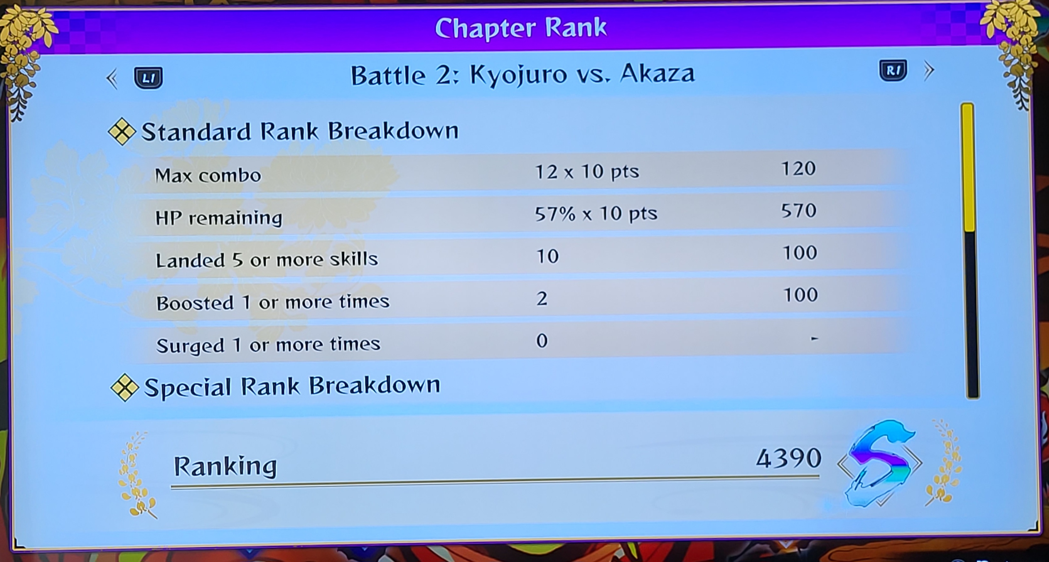 Для последней специальной миссии мне показался метод с бустом неэффективен, так как придется неоднократно приближаться к врагу и каждый раз будет вероятность пропустить сильную атаку, и тогда ранга S не видать.