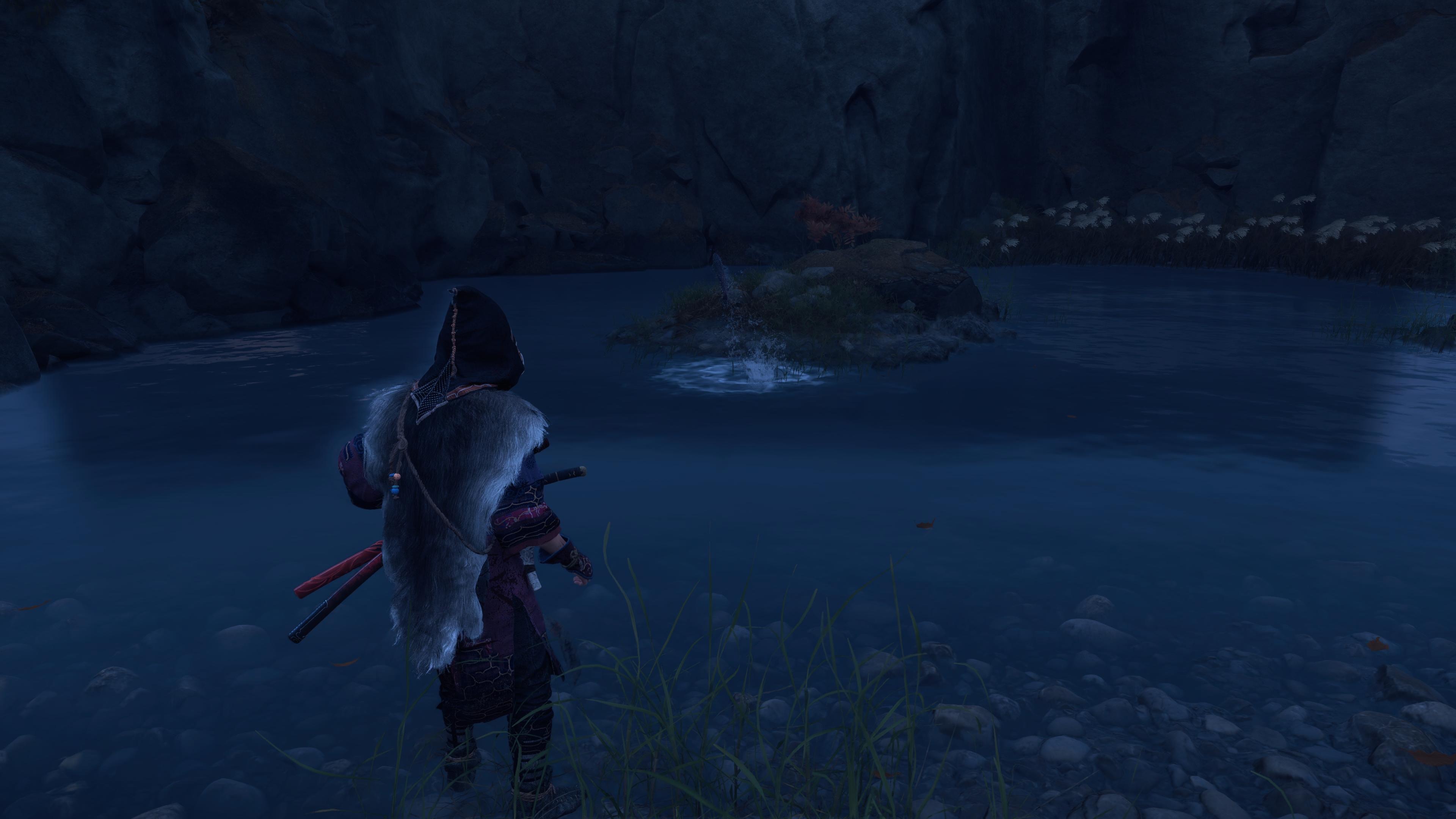 Лиса в итоге приведет вас в место с тремя прислужниками Сайто, которых потребуется убить. Там в небольшом пруду выпрыгивает рыба.