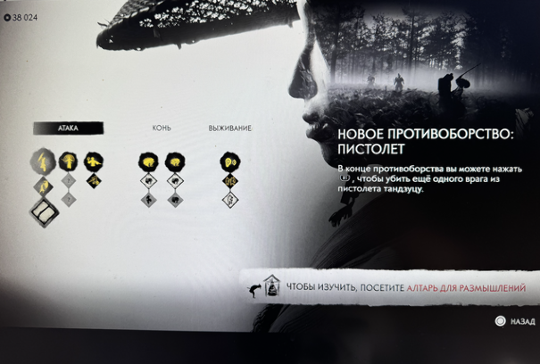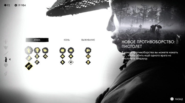 После того как дойдёте по сюжету до Осимы, и поможете учителю Кремень Мурате, получите от него в подарок пистолет. Необходимо будет найти алтарь и получить очки для открытия в графе "Месть" умения "Новое противоборство-пистолет". После этого найти группу врагов, активировать противоборство