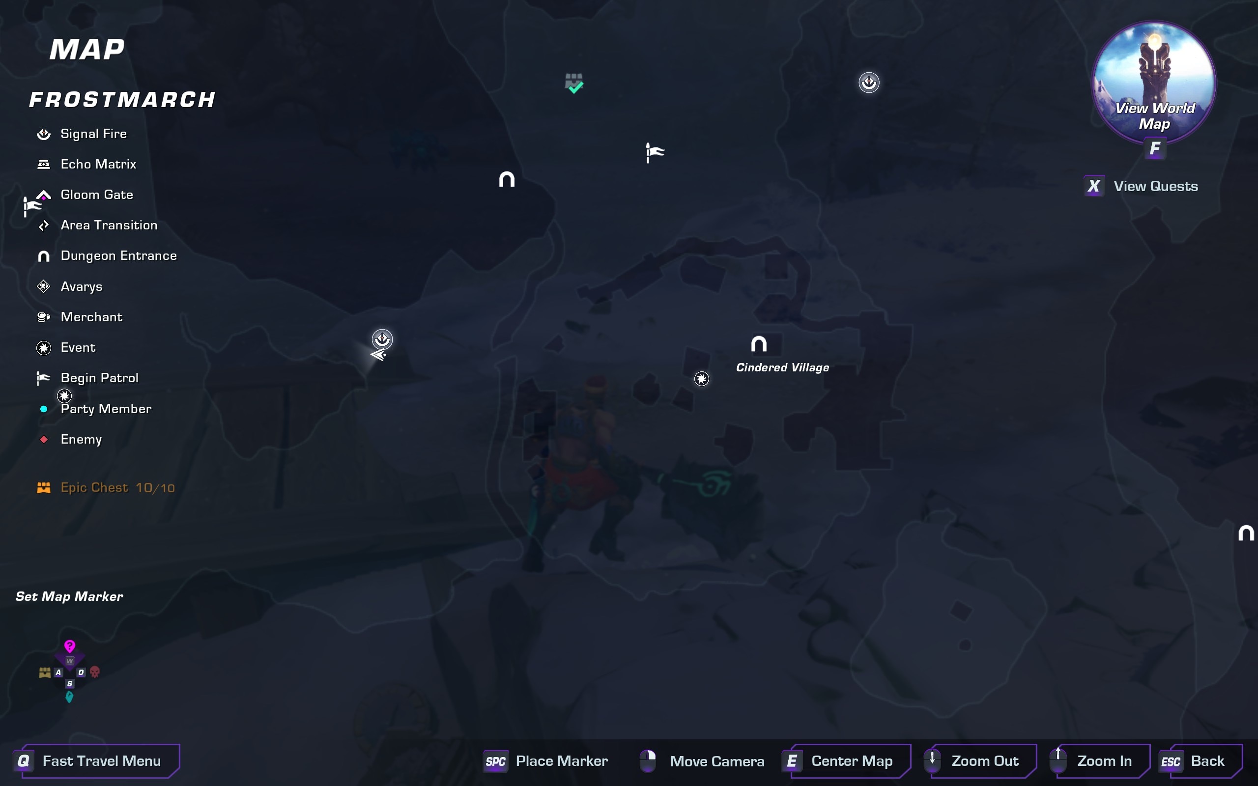 В центре локации есть деревня Cindered Village и рядом с ней портал.