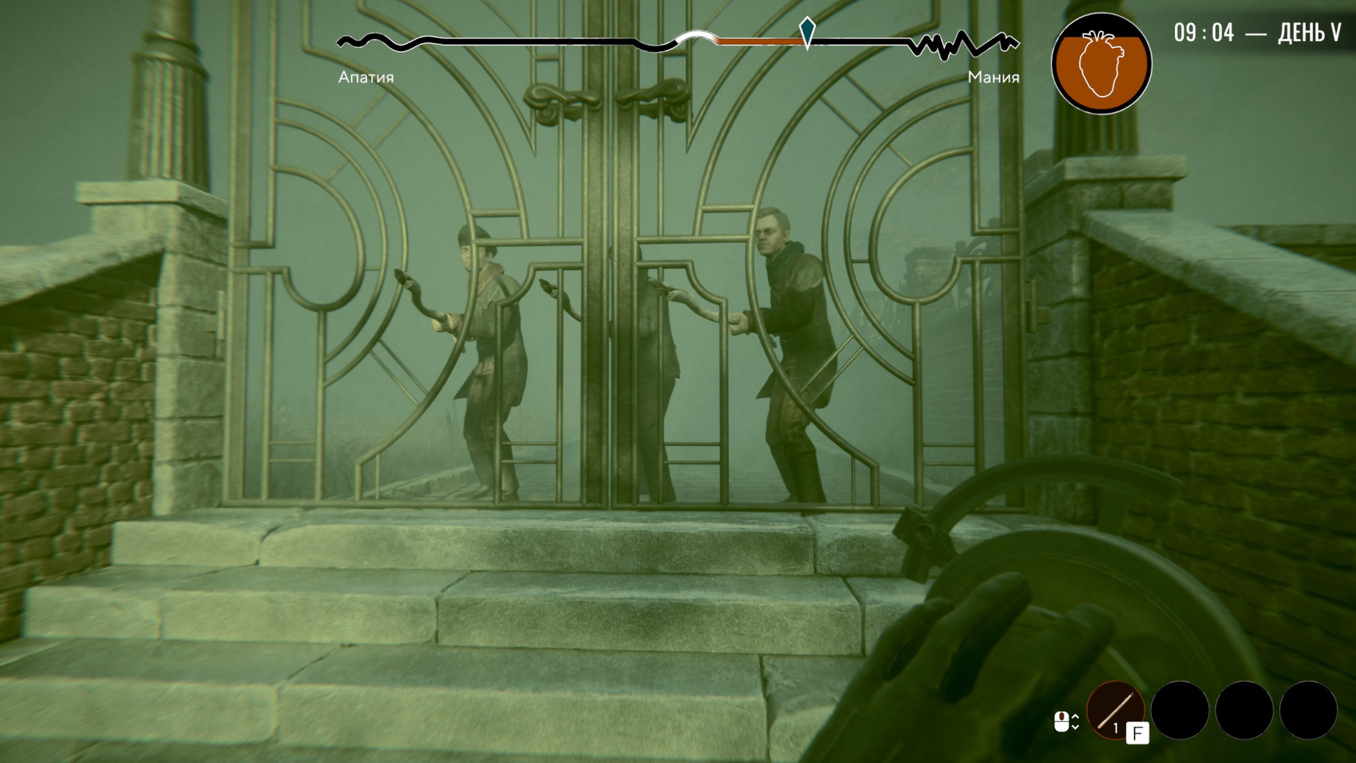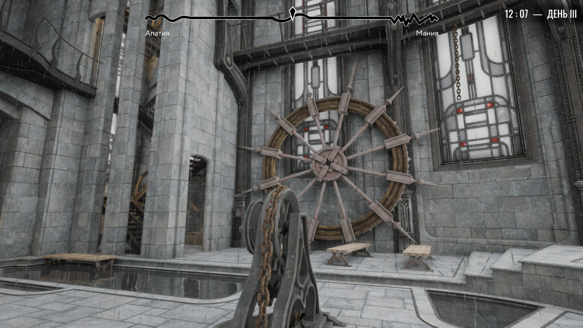 Самое заметное изменение — исчезновение большинства элементов выживания. Голод и прочие привычные показатели остались в прошлом, так что рыться в помойках, лишь бы не умереть от пустого желудка, больше не придётся. На смену иммунитету пришла психика, представленная в виде шкалы, где на одном конце находится “апатия”, а на другом — “мания”. Перекос в любую сторону опасен. Апатия приводит к тому, что герой буквально “отключается”: движения замедляются, действия даются с трудом, мир будто теряет чёткость. Мания же, напротив, усиливает приток адреналина и ускоряет передвижение. Если довести шкалу до критической отметки, то Данковский либо не выдержит давления и покончит с собой, либо просто перенервичает и умрёт от постоянно убывающего здоровья и переизбытка напряжения. Идея, на самом деле, блестящая: вместо банального голода игроку предлагают контролировать внутренний разлад человека, пытающегося сохранить рациональность в мире, где саму логику унижают на каждом шагу. Стоит ли рисковать и грубить в разговоре, если подобная дерзость скажется не только на поведении окружающих, но и на твоём собственном состоянии? Минус здесь, пожалуй, только один, да и то довольно условный. Поправлять тоску и маниакальность можно не только с помощью медикаментов, но и через странные, почти абсурдные действия вроде пинков мусорных баков или разбивания зеркал. В рамках концепции “разрядки психики” это выглядит уместно, но на практике всё нередко сводится к тому, что ты лихорадочно носишься по округе в поисках качелей, лишь бы успокоить расшатанные нервы и не умереть раньше времени.