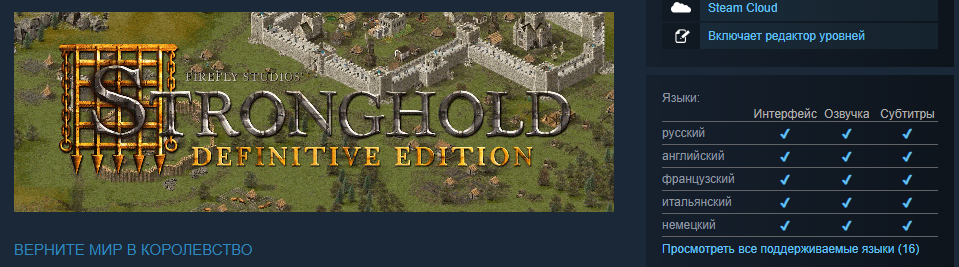 Ремастер классической стратегии Stronghold получит полноценную локализацию и выйдет на PC 7 ноября