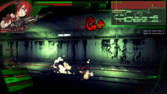 При этом каждый тип оружия полностью занимает руки девушки, и за атаку всегда отвечает одна и та же кнопка — «R2». Можно изменить по желанию. То есть нельзя стрелять из винтовки, а потом нажать другую кнопку и ударить мечом. Игроку необходимо переключить оружие кнопкой «R1», которая меняет вооружение по кругу, или же стрелками на D-Pad’е, где каждое направление отвечает за свою ячейку. В арсенале приёмов у Хисако есть прыжок, перекат и мощная атака, уникальная для различных орудий смертоубийства. Например, меч проводит мощную круговую атаку, а с автоматическим агрегатом девушка приседает, берёт ствол на изготовку и производит более смертоносные выстрелы. Вот так: