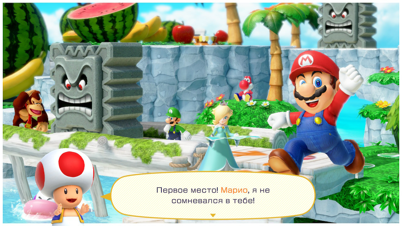 Развитый во все поля онлайн (лично мне впервые стало интересно играть без друзей/родных со мной в одной комнате). The best of мини-игр. Пять полей, а не четыре (хотя Торт Пич очень такой себе). Больше настроек удобства. Больше прогрессии всякой и статистики.
