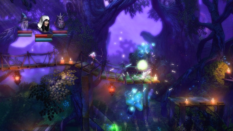 Но что-то мы слишком углубились в нововведения и совсем забыли упомянуть о том, чем вообще нас может порадовать Trine. Если вы не знакомы ни с первой, ни со второй частью, стоит сделать небольшой экскурс по умениям героев этой красивой сказки. Воровка является самой ловкой среди троицы, она способна выпускать крюк и цепляться за уступы, она отлично владеет луком, поэтому без труда поражает врагов стрелами. Чародей может создавать предметы, причем, продвигаясь по сюжету, он получает возможность использовать все новые и новые балки, кубы и прочее. Ну а воин – типичный боец ближнего боя, который пускает в ход свои боевые навыки для уничтожения нечисти. В ходе путешествия троица будет находить бутылки с зельем опыта. Если накопить необходимое количество, можно будет получить очки навыков для каждого персонажа, но тут есть подвох, ведь большая часть этих зелий находится в труднодоступных местах. Чтобы активно прокачивать героев необходимо внимательно осматривать локации на предмет укромных мест. Подобные поиски можно назвать особенно успешными, если в очередном закутке неразлучная троица найдет не зелье, а сундук с артефактом. Волшебных предметов не очень много, однако они очень полезны, есть среди них универсальные, а есть те, которые подходят лишь определенному герою.