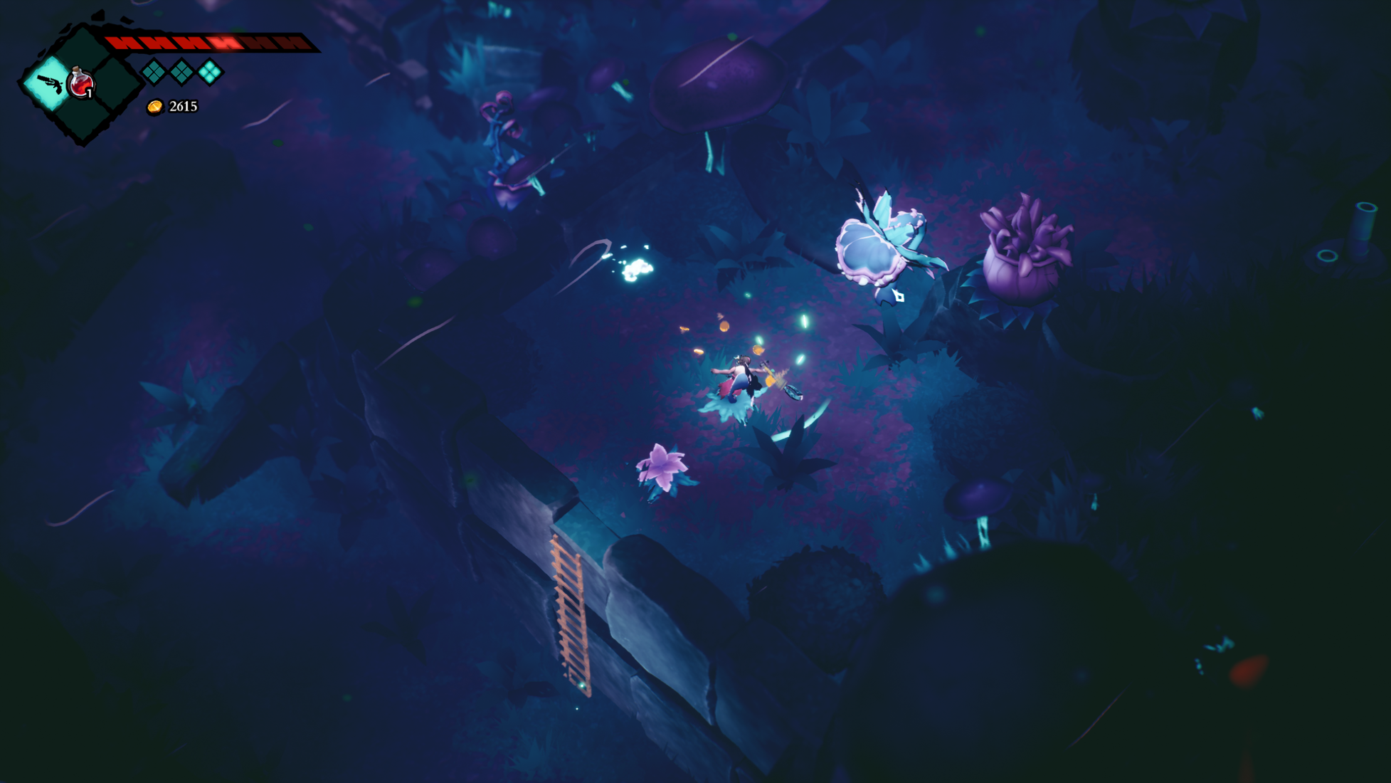 Геймплейно перед нами предстает странная помесь метроидвании с элементами souls-like. Основным оружием героя является огромный крюк, которым мы можем наносить быстрые или заряженные удары. Для защиты у нас есть только один приём – перекаты. По мере продвижения истории и исследования острова нам открываются новые виды оружия и умений, например: пистолет, бомбы, возможность отражать снаряды или притягиваться крюком к врагам и предметам. Растущий арсенал влияет не только на наши боевые возможности, но также и на способы взаимодействия с окружением. В некоторые части локаций можно попасть лишь при наличии определённого умения или инструмента, как и в большинстве метроидваний. На протяжении игры нас ждет достаточное разнообразие противников, пусть в основном это различные скелеты и морские создания с рыболюдьми. У каждого из них есть свои шаблоны атак, которые необходимо запоминать, иначе героя быстро отправят к ближайшей точке сохранения. Управление протагонистом хоть и не идеальное, но вполне приемлемое для большинства ситуаций, за исключением моментов, когда врагов становится больше двух. Персонаж имеет явный приоритет анимаций, из-за чего мы часто непреднамеренно получаем урон. Впрочем, смерть не наказывается никакими штрафами, разве что придётся вновь пробираться через возродившихся врагов. Боссов в игре много, они в меру разнообразны, но у всех них есть общая проблема — сражения с ними слишком затянуты. При этом мы не имеем никаких индикаторов здоровья босса, и лишь на его модельке постепенно появляются трещины, сигнализирующие о приближении к финалу боя. Однако такая визуальная маркировка абсолютно неинформативна и порой сбивает с толку.