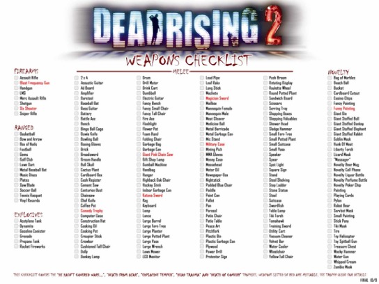 Вот полный список вещей, которыми нужно "огреть" зомби(некоторые предметы уникальны- не пропустите их):